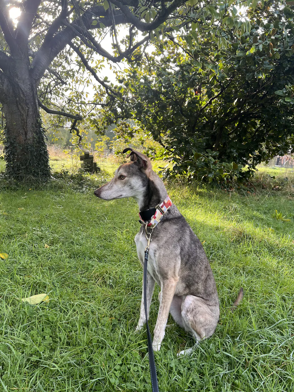 The collar is composed of 100% cotton, reinforced with Petersham lining for stability. This makes the collar robust enough and comfortable for everyday use. The collar is machine washable at 30 degrees non-bio.