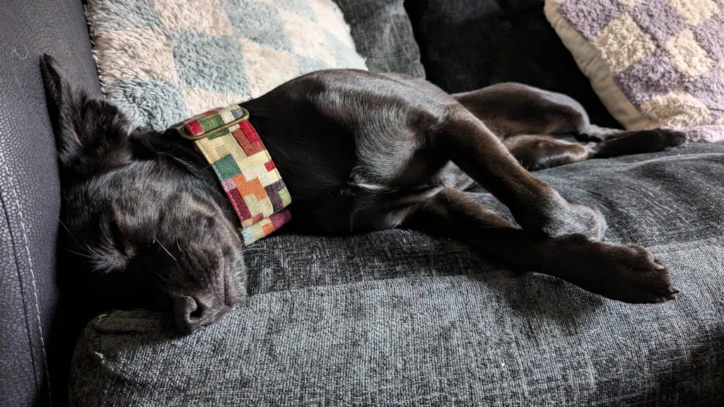 This is our stunning tapestry geometric design boasting a variety of vibrant colours. It is sure to offer a unique look for any dog. Soft but durable and doesn't compromise style for functionality.