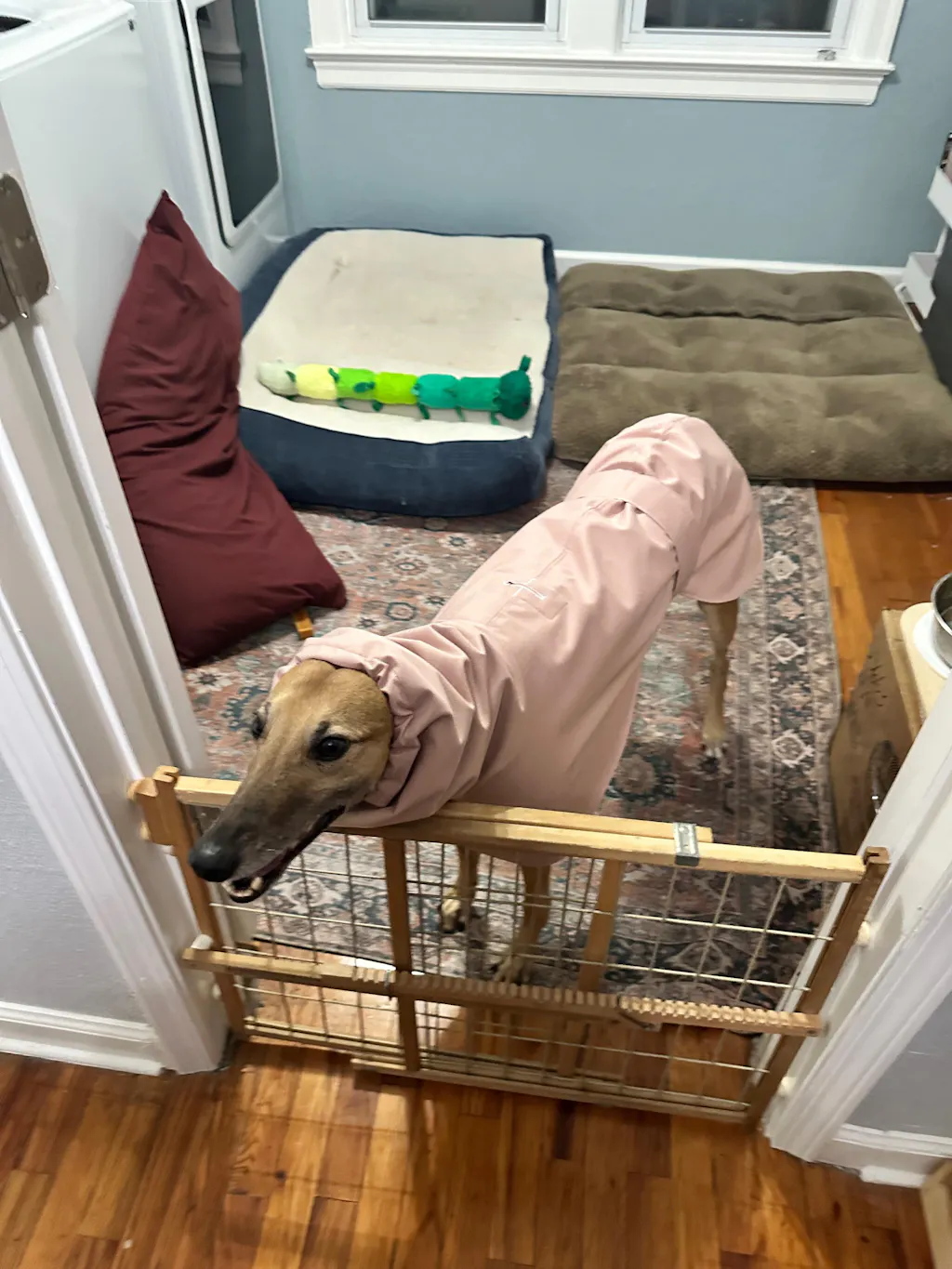 Have you and your Greyhound ever found yourselves waiting for the rain to pass before getting out? Then this is the coat for your four-legged best friend!