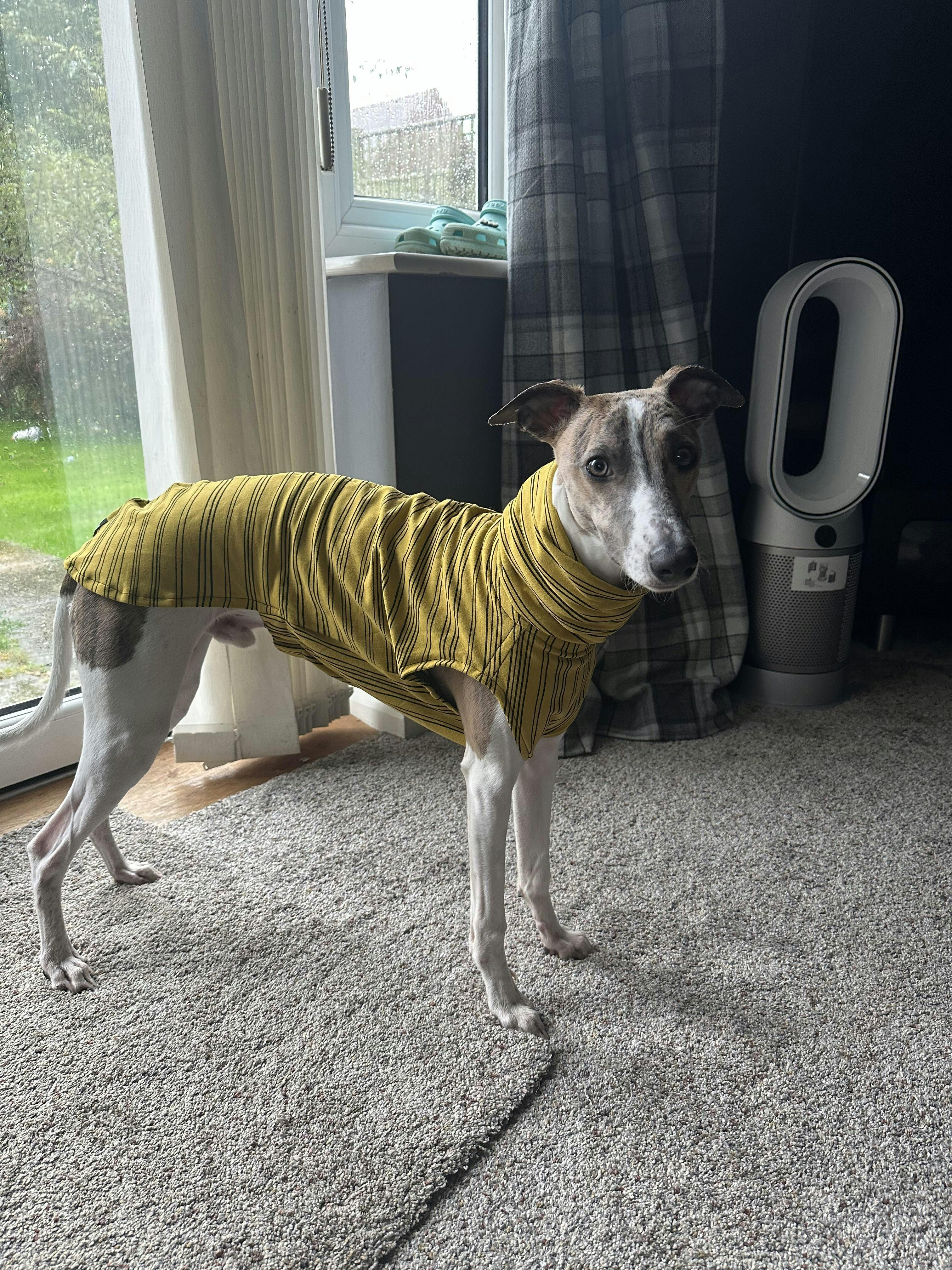 That’s exactly why this Jumper for Whippets is a must-have! The jumper works perfectly, providing the relevant protection sighthounds require, without hampering their stride. We would advise when you feel the need to wear a jumper or long-sleeved top, this is a good indicator for your sighthound to wear theirs.