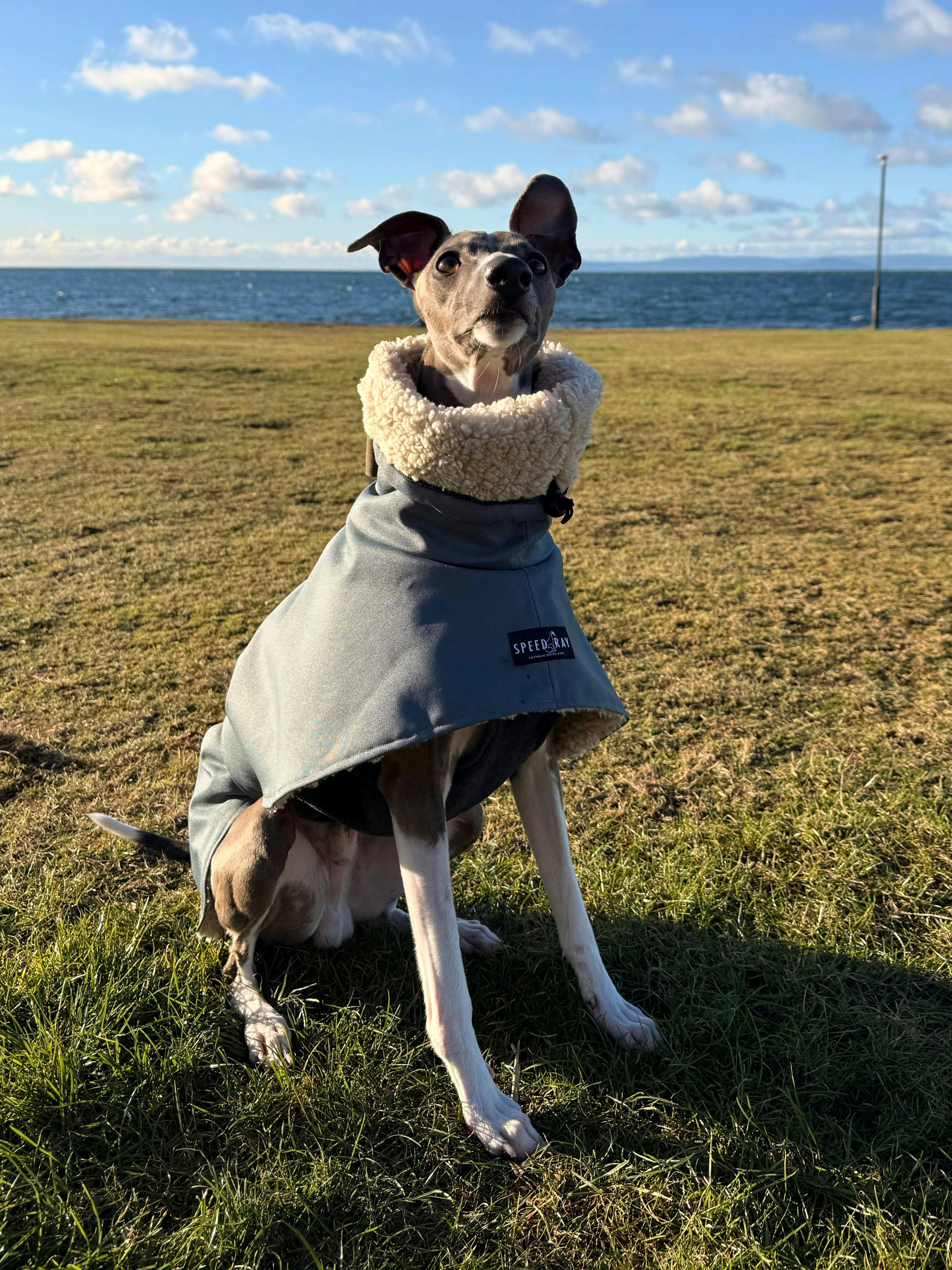 Keep Extra warm and dry this season with THE ELSA Lightweight, Water-Resistant, Whippet Raincoat lined with our toasty warm Druna jumper!